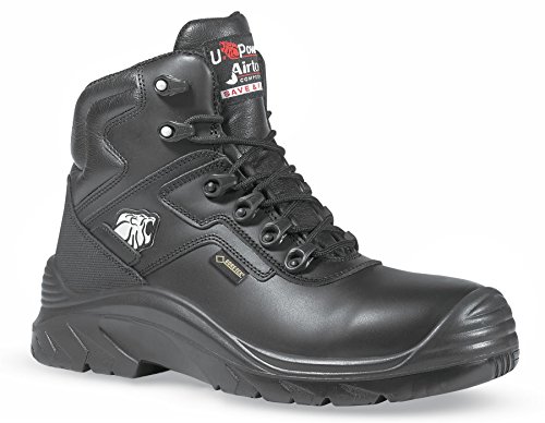 Mens U-Power Safety Boots. These boots are fully loaded with a Full Grain waterproof Leather Upper, Gore-Tex Breathable and waterproof lining, Airtoe Composite Perforated safety toecap with breathable membrane. They are feature a pierce resistance plex midsole and a poly soft anatomic insole made from soft polyurethane, with open pockets in the area of foot support. Nitril heat resistant sole rated to 300c and a widefit confort 11 modopoint fitting. DROP GTX® S3 WR HRO HI SRC UNI EN 20345:2011
